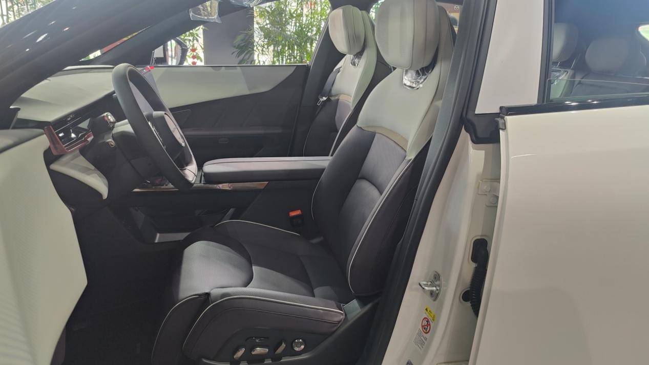 座椅方面,人機的設定就是正常的家用SUV水平,坐姿略高,沒有很明顯的包圍感,但是視野足夠通透。座椅的柔軟度和包裹感都比較適中,仿皮的手感不算細膩,好在摸起來也沒有太明顯的廉價感。Max版的分色座椅視覺上會更高檔,但承托的感覺差別不大。