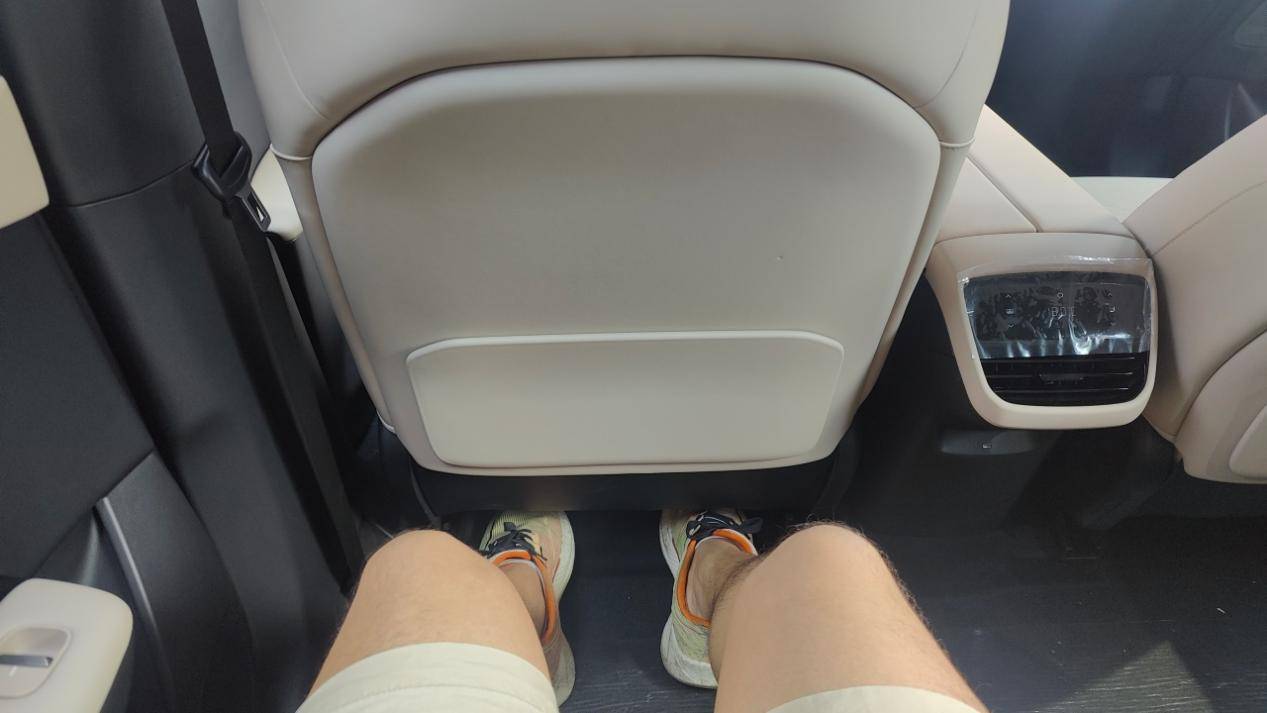 后排的座椅除了坐墊長度略短之外,其它方面都沒什么問題,雖然包裹感不算特別強,但柔軟度和支撐性還是挺好的。膝部空間的表現很不錯,以我1米74的身高,前排調整到位之后,膝部空間輕松超過兩拳。