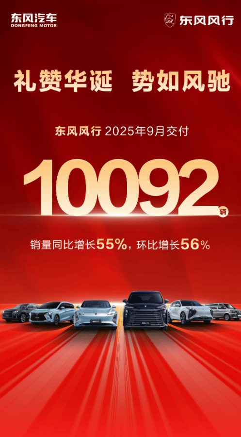 公開數據顯示,2025年9月份,東風風行9月交付量突破10092臺,實現同比增長55%,環比增長56% 的亮眼成績。顯然,東風風行以遠遠高于行業平均增速的速度實現了“狂奔”。其中,星海V9 9月交付環比激增200%,一舉斬獲“20萬內中大型新能源MPV”銷量榜首,在三大權威平臺MPV口碑榜中均位列第一。