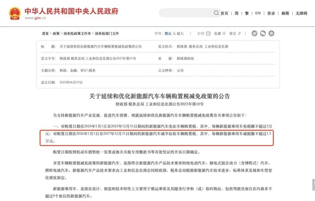 但是從2026年開(kāi)始,新能源車(chē)享受的購(gòu)置稅減免政策將從“免征”調(diào)整至“減半”,并且每輛車(chē)減免稅額不超過(guò)1.5萬(wàn)元。