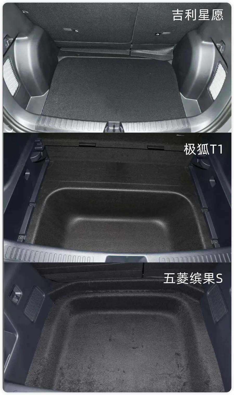吉利星愿則勝在儲物巧思,后排座椅也支持4:6比例放倒,雖然后備箱最大拓展容積1320L,要低于五菱繽果S和極狐T1,但它是同級唯一配備70L前備箱的車型,再加上副駕抽屜、后座下方等分散儲物空間,日常放一些零碎物品會比較方便。
