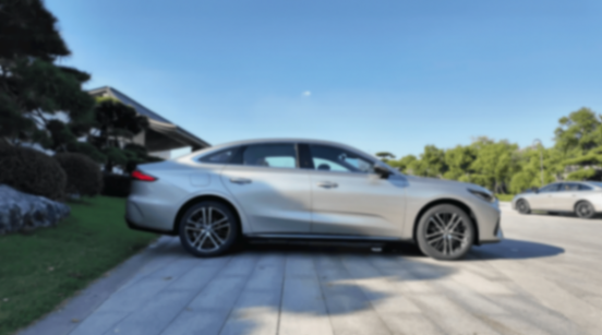 來到車側,貫穿式腰線從車頭延伸至車尾,讓車身視覺效果更顯修長;全新設計的輪圈搭配規格為235/45R18的輪胎,不僅提升了運動感,還增強了行駛穩定性;側窗邊緣的鍍鉻裝飾則為車身增添了一絲精致感,上下兩條鋒利的腰線進一步強化了整車的運動姿態。