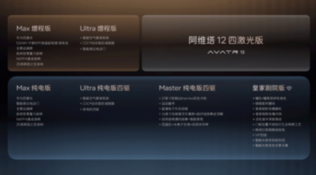 10月18日,阿維塔12四激光版預售發布會在重慶旁觀者設計博物館正式舉行。作為品牌旗艦轎車的新版本車型,此次阿維塔12四激光版共推出涵蓋純電與增程雙動力的6款車型,預售價格區間鎖定在30萬元級豪華市場。即日起至正式上市前,用戶下訂可享受2000元意向金抵扣5000元車款的限時預售權益,進一步降低入門門檻。同時阿維塔還宣布,將攜手華為開啟乾崑智駕®城市公開賽,讓消費者在真實道路場景中體驗其智能駕駛能力。面對日益激烈的高端新能源競爭,阿維塔12四激光版以“十項全新升級、十二項同級獨享”的豪華配置為核心,意在重塑智能豪華轎車價值體系。