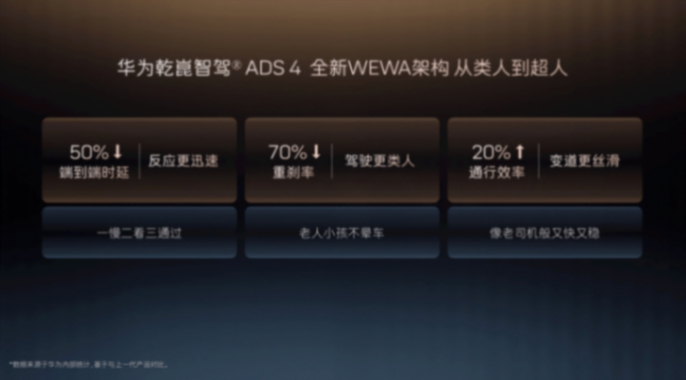 軟件方面,新車搭載華為乾崑ADS 4智能輔助駕駛系統,基于全新的WEWA技術架構,實現從“模仿人類決策”到“超越人類感知”的進階。通行效率提升20%,重剎率降低30%,端到端延遲降低50%。全維防碰撞系統CAS 4.0可識別特種車輛、行人及外賣騎手等特殊目標,對“鬼探頭”等突發危險實現微秒級介入,真正讓用戶在城市復雜環境中體驗“更聰明、更安全”的自動駕駛。搭配鴻蒙座艙HarmonySpace 5,語音控制、智慧輔助、應用生態全面升級,為用戶提供流暢如手機般的交互體驗。