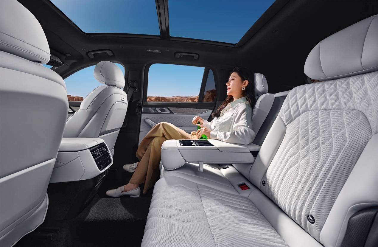 全車Nappa真皮座椅,前/后排配備通風、按摩和加熱功能,二排小桌板和多功能中央扶手(配備雙開式杯托、手機存儲室、暗盒、USB充電接口),搭配14揚聲器Bose音響、雙層夾膠隔音玻璃、海洋之謎香氛系統(tǒng)及四溫區(qū)獨立空調等多項越級豪華配置,為用戶帶來移動的私享空間。就像坐在一個移動的豪華包廂里,無論是商務洽談還是家庭出游,都能讓你和乘客感受到無微不至的關懷。