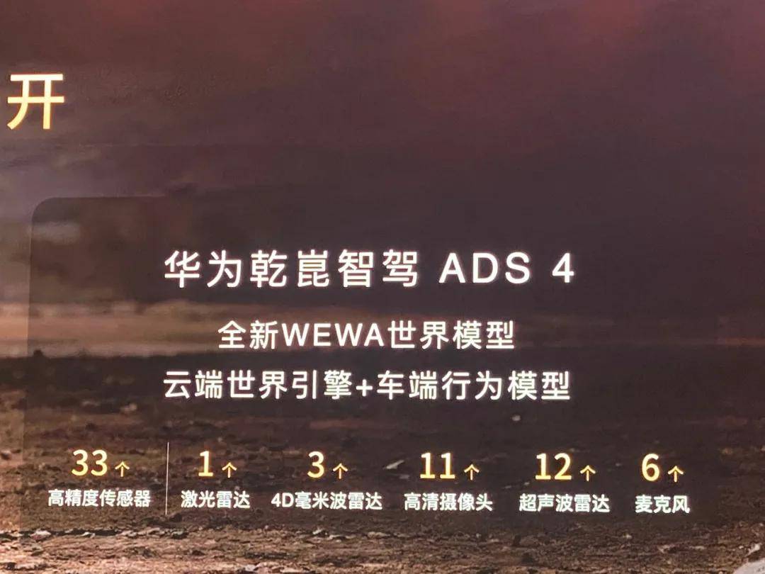 頂配智境乾崑版,更是搭載華為乾崑智駕ADS 4,配備33個高精度傳感器,包括1個激光雷達、3個4D毫米波雷達、11個高清攝像頭、12個超聲波雷達、6個麥克風,可實現全域NCA領航輔助……