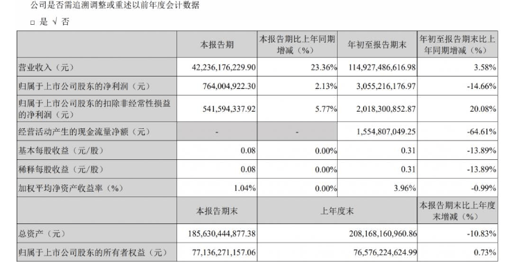 財報顯示,三季度長安汽車營收422.36億元,同比增長23.36%;歸母凈利潤7.64億元,同比增長2.13%。作為“劃歸新央企”后的首份財報,長安汽車營業收入與凈利潤實現雙增長,綜合毛利率逐季提升,產品效益穩步改善,轉型階段性成果初顯。