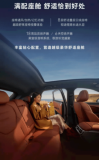 車輛內(nèi)飾變化不大,依舊配備15.6英寸中控屏以及22.8英寸HUD抬頭顯示的組合,可支持Carplay和Hicar等手機互聯(lián)。配置方面擁有前排50W手機無線快充、前排座椅加熱、通風(fēng)、按摩以及18揚聲器音響系統(tǒng)等等。此外,新車還會標(biāo)配L2級駕駛輔助功能,高配車型搭載高通8775艙駕一體芯片,支持城區(qū)/高速NOA和全場景智能泊車輔助等功能。
