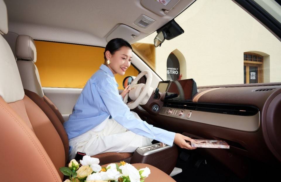 外觀之上,寶藏版延續(xù)了Lumin家族圓潤靈動的造型語言,前臉線條簡約流暢,融入鐳雕透鏡大燈與懸浮式車頂設(shè)計,都市感與時尚度并存。內(nèi)飾部分,提供鎏金棕與水墨色兩種配色方案,并以玫瑰金飾條、荔枝紋中控臺、包裹式座椅等細(xì)節(jié)營造出輕奢氛圍。更大面積前擋玻璃與可調(diào)遮陽板化妝鏡,讓駕駛視野更開闊,也兼顧日常精致感。它不只是代步工具,更像一件能彰顯生活品味的“都市單品”。