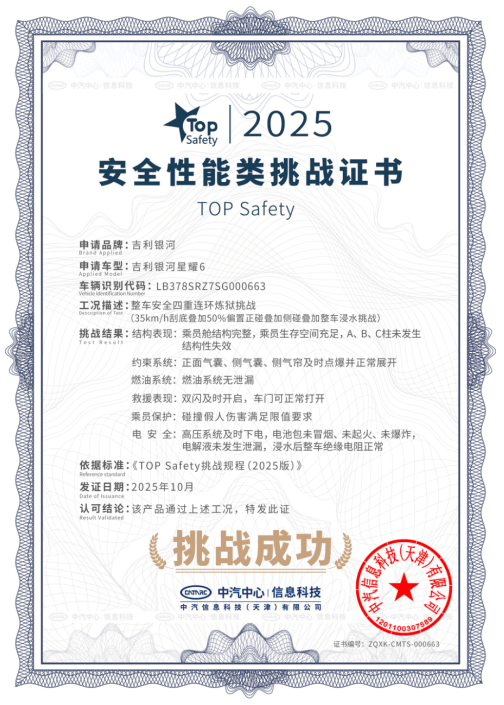星耀6在上市前就經歷了多重嚴酷測試:歷經超200萬公里整車耐久測試、50萬公里混動系統S級認證,發動機啟停耐久達80萬次(超行業8倍);通過汽車之家“5×24小時不間斷試煉”,連續5天120小時橫跨5城超5000公里,面對高濕、低溫、信號干擾等極端環境,始終零故障、零衰減,印證了全天候可靠性。