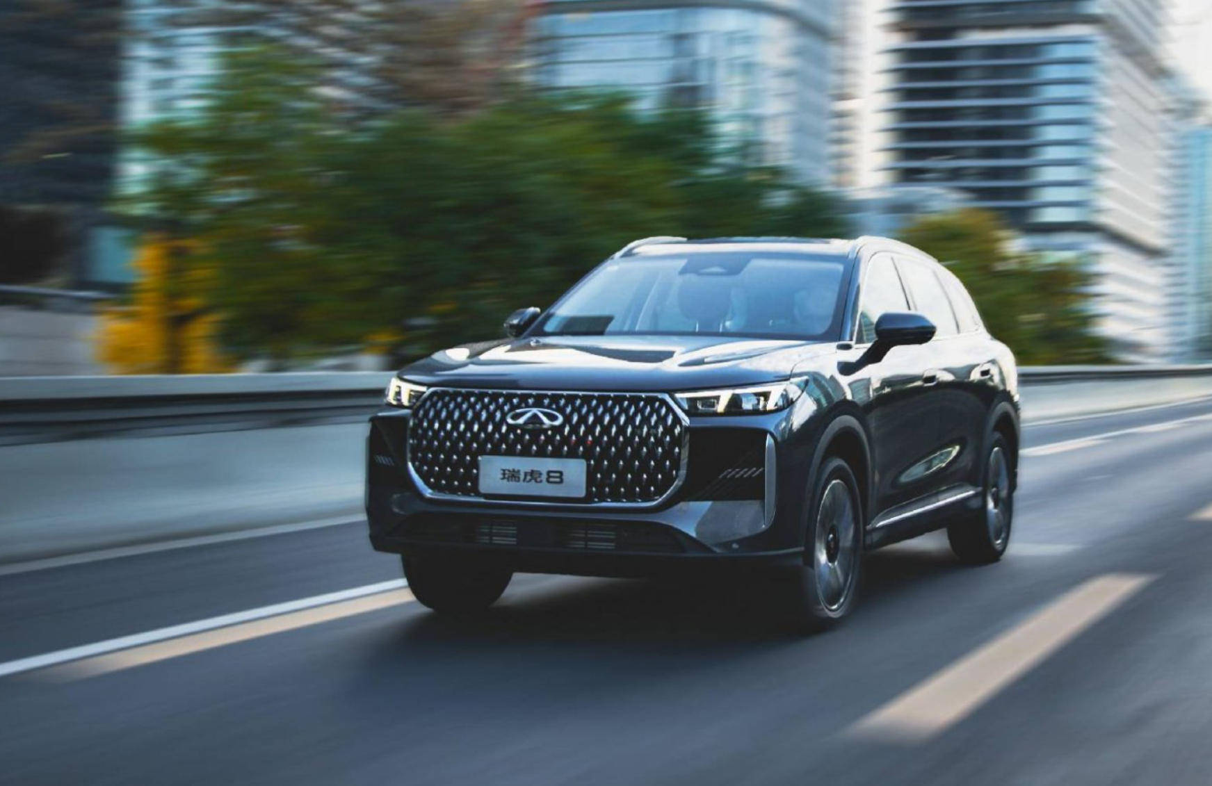 初見第五代瑞虎8,便能感受到其撲面而來的大氣與精致。新車采用仿生自然力量美學(xué),提供“虎踞”與“豹躍”雙前臉選擇——虎款格柵如齒鋒般凌厲,豹款則似齒刃般躍動(dòng),配合黑化深邃的分體式矩陣LED大燈,以及恰到好處的鍍鉻點(diǎn)綴,既保留了家族設(shè)計(jì)的辨識(shí)度,又注入了更多年輕活力。