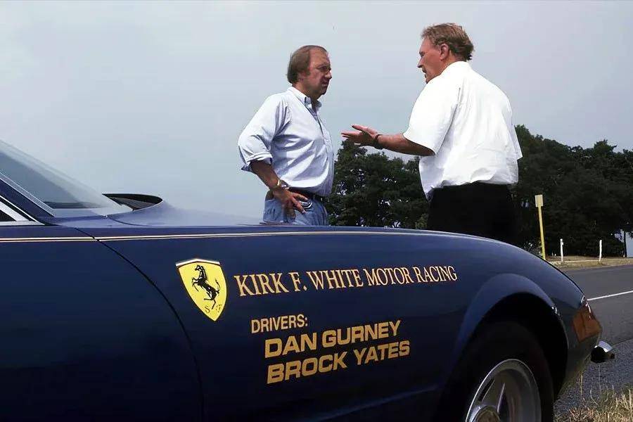 布洛克·耶茨與知名賽車手丹·格尼(Dan Gurney)組成最具傳奇色彩的組合,他們駕駛一輛藍色Daytona 365 GTB/4。