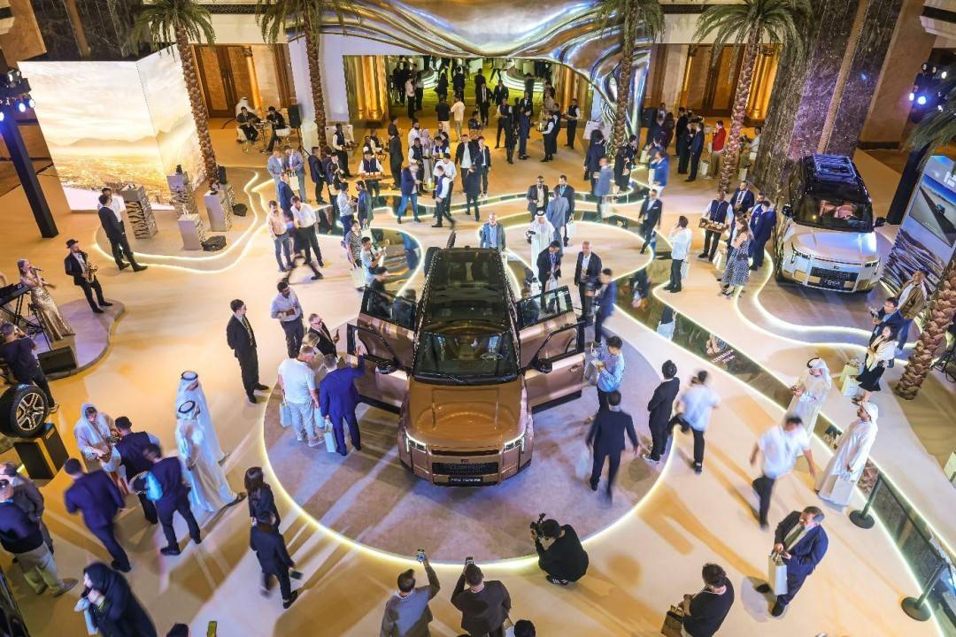 皇家定制版則把“豪華”具體化為跨文化語言。金屬粉白+啞光金雙色車身、懸浮LOGO、專屬輪轂以及靈感來自中東傳統服飾 Thobe 的黑色菱形拉花,讓整車的觀感從“豪華SUV”進一步走向“儀式感物件”。這種表達方式不靠夸張,而是以文化元素與材質的組合來獲得差異化,很符合當下全球車企在高端市場的設計趨勢。