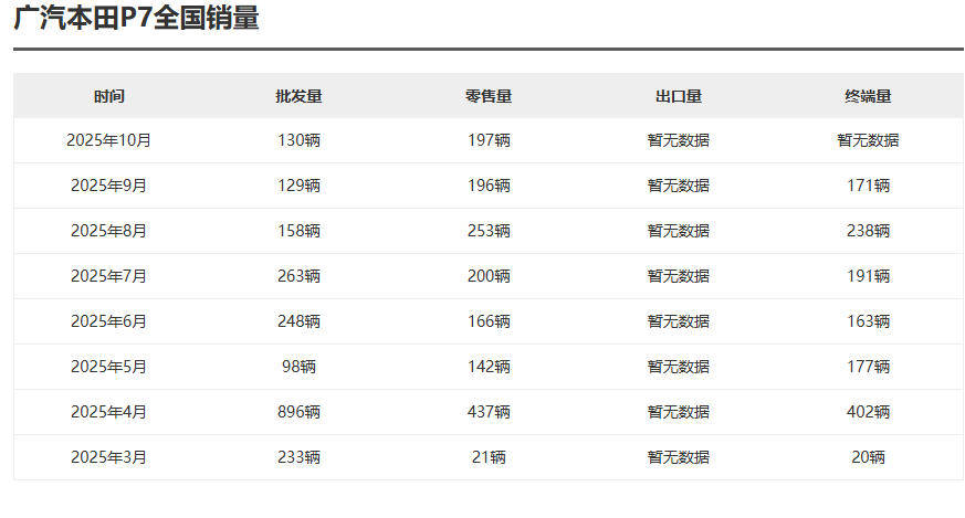 而且需要指出的是,今年10月下旬廣汽本田P7還推出了限時優惠活動,限時價降至14.99萬起,以期靠價格優勢來換來銷量的增長,但從10月份的銷量表現來看,降價也并未換來P7的銷量回暖。當然,降價的效果具體如何,也應該考量11月和12月的銷量表現,到時我們也會持續跟進。