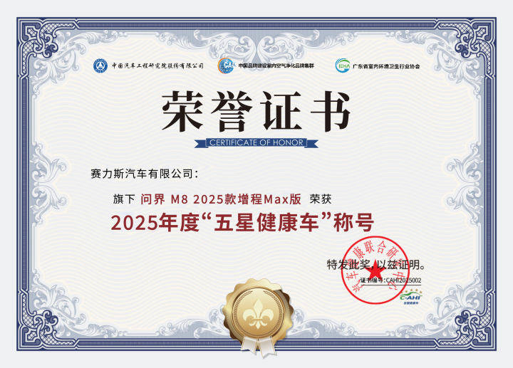 值得一提的是,問界M8榮膺“五星健康車”認證,標志著問界全系構建起“全系五星健康車”產品矩陣。這不僅是對單一車型的認可,更是問界對“零危害”品牌愿景的體系化踐行。品牌始終精準洞察用戶對健康出行的深層關切,系統性構筑起涵蓋“清新呼吸、母嬰親膚、舒適護眼、靜謐悅耳、抗擾無憂”的全維健康生態,將承諾深植于每一處細節,不僅重新定義了車內健康安全標準,更為新能源汽車行業樹立了全新的價值標桿。未來,問界將持續以健康科技為驅動,引領行業邁向更高階的健康安全出行時代。