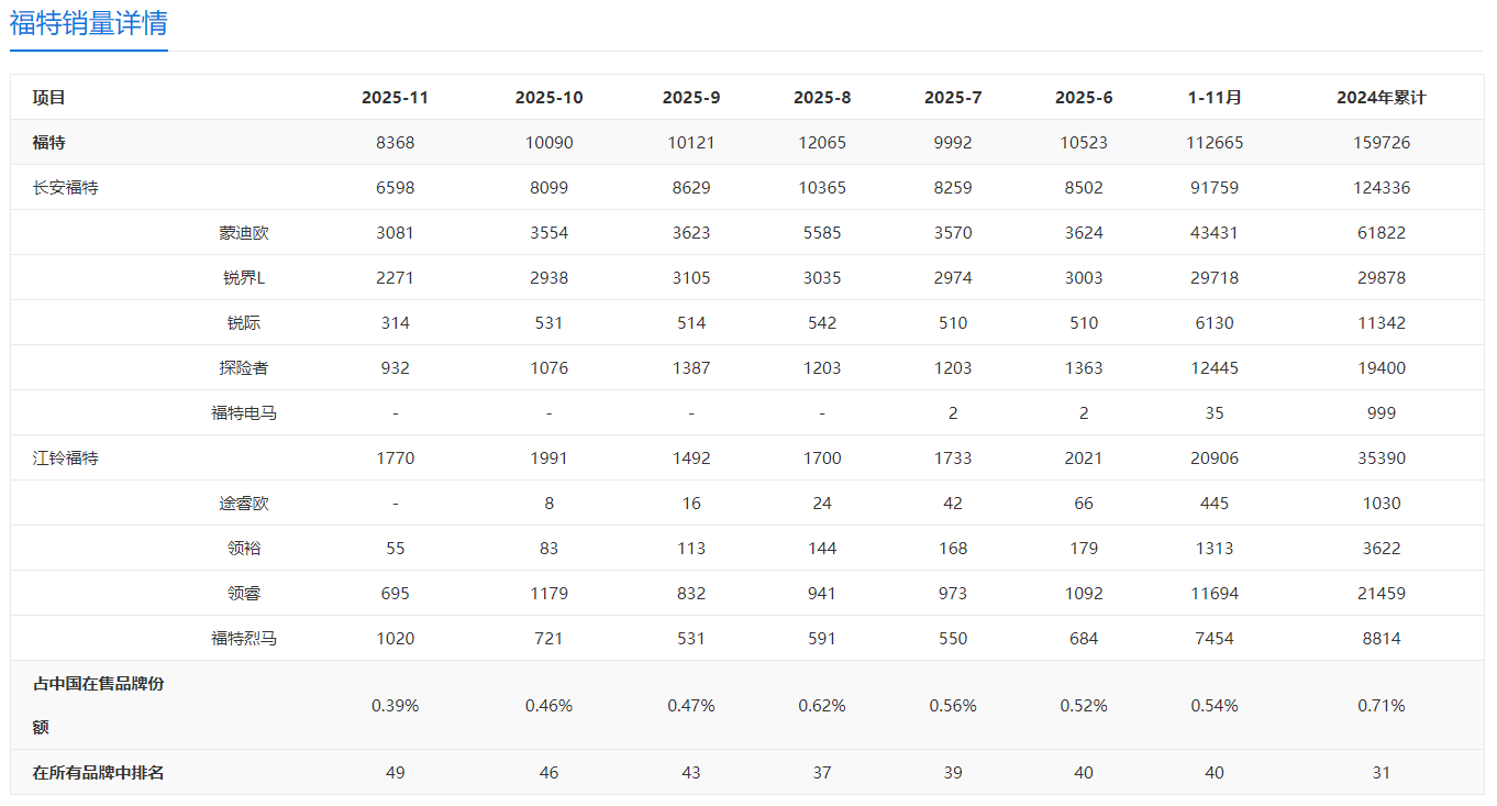 并且江鈴福特目前也沒有暢銷車,只有福特烈馬越野車在細分市場里還不算低。究其原因是江鈴福特打造的SUV車型并非福特全球車型,屬于本土化的產品,這樣的汽車產品相較于蒙迪歐、銳界、探險者等全球車型而言,客觀上也難以被太多人認可。