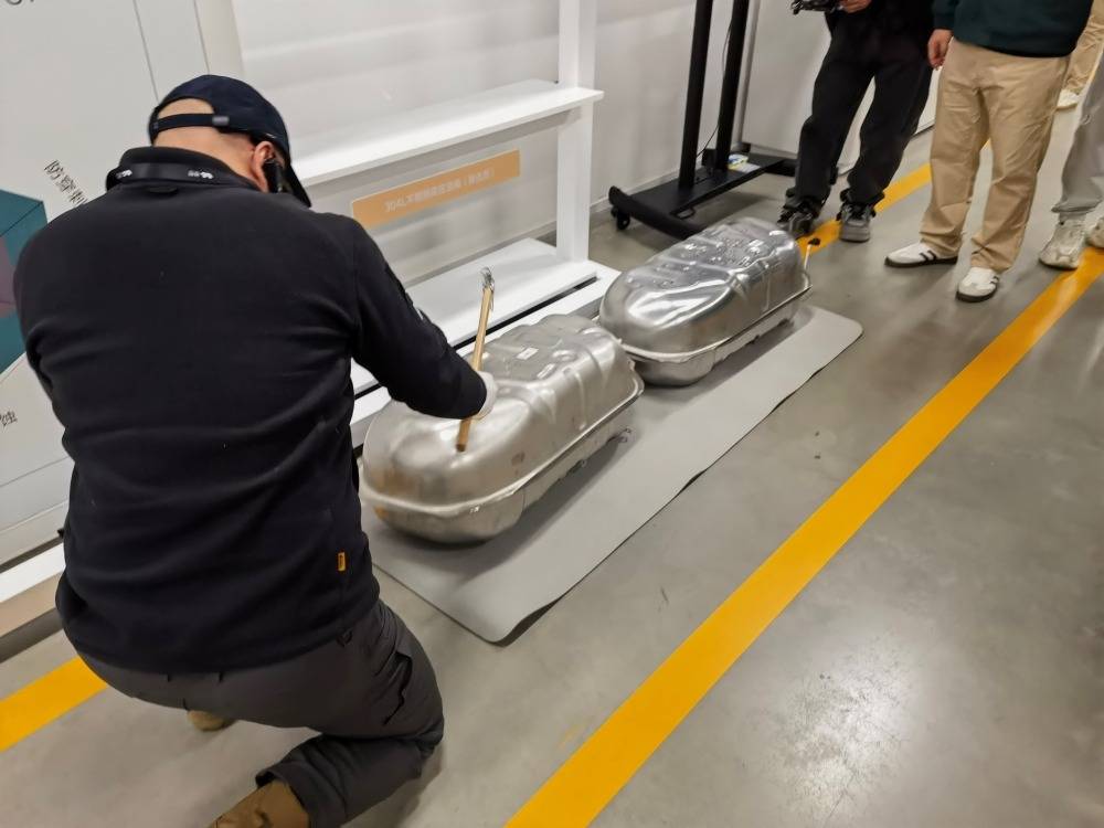 二、自研超高強(qiáng)鋁型材已上車 現(xiàn)場用錘子砸油箱