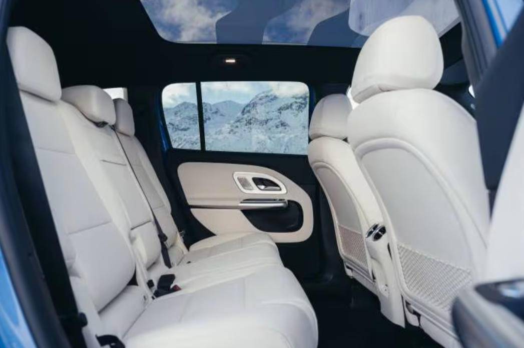 新一代 GLB的尺寸有所增加,軸距加長60 mm,達到2889 mm,二排乘客的腿部空間更寬裕,二排座椅的靠背角度也重新設計,座椅泡沫與輪廓更貼合人體,乘坐時的大腿接觸面積變大,這意味著長途久坐不容易類,標配全景天窗,第三排也不會有壓抑感。