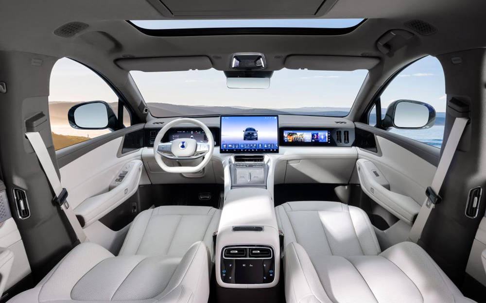 騰勢N8L的內飾在用料方面也很講究,車內有大面積軟質材料加以覆蓋,中控臺設有無線充,座椅的柔軟度也比較適中,而且,車內還設置了不少的儲物槽,既突出了實用性和質感,也顯示出很好的奢華感。當然,標志性的中控大屏依然處于醒目位置。
