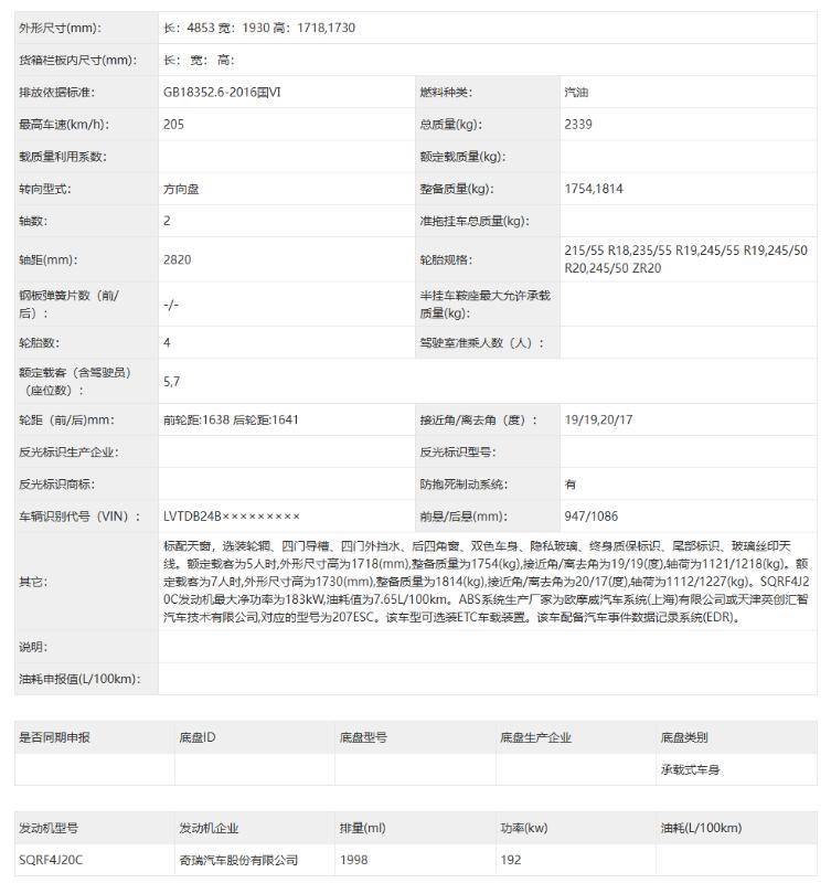 作為奇瑞汽車燃油SUV家族的銷量中堅之一,新款瑞虎9在近期公示了申報信息。新車針對外觀進行了一定幅度的調整,并預計對配置也進行了升級,從而全面強化產品競爭力。