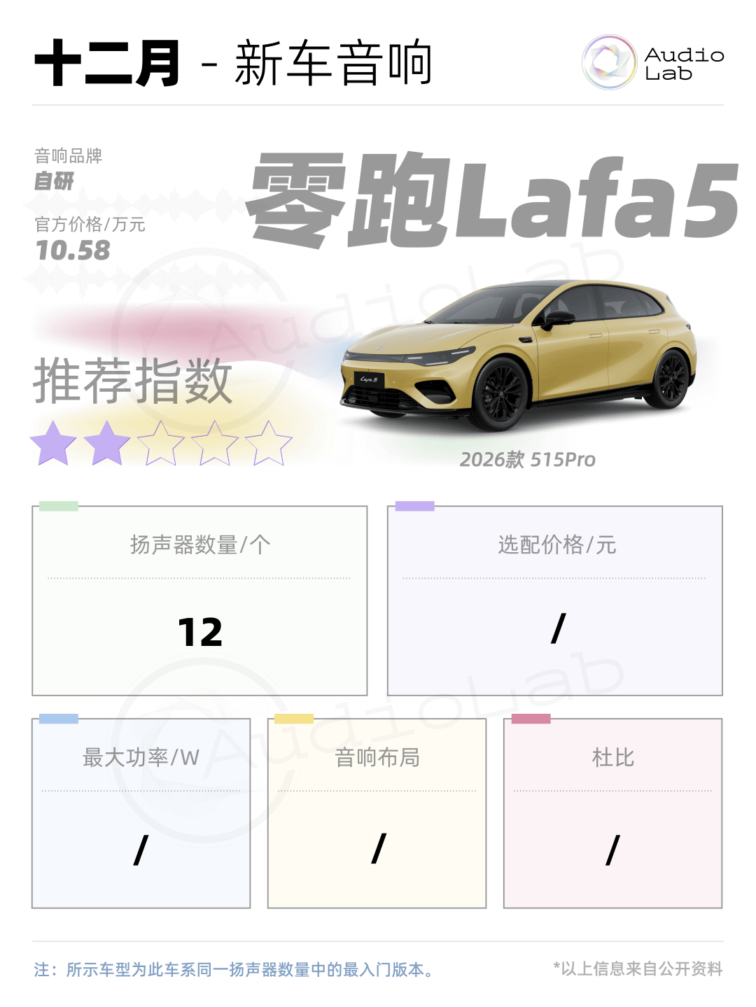零跑Lafa5在音響上的配置可能初看覺得平平無奇,但參考它10萬起的親民價格來看,12個揚聲器、7.1聲道、以及AI算法這樣的配置,其實可以算同級中,中等偏上的配置。