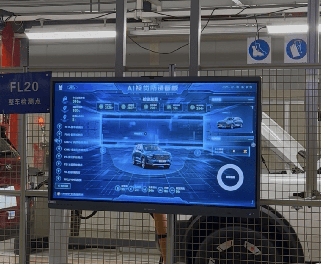 比如在總裝過程中,福特運用了AI視覺防錯看板,用14個檢測機器覆蓋7個檢測點位,90秒就能完成2092個檢測點檢測。