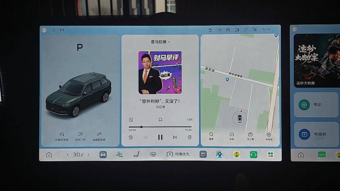 紅旗HS6 PHEV為副駕屏幕設計的“獨立音源”功能,在實際使用中帶來了很高的實用性。副駕乘客可以自由追劇或聽歌,聲音通過獨立的藍牙耳機播放,完全不會干擾到主駕導航或音樂,真正實現了“一車兩世界”的共存體驗。