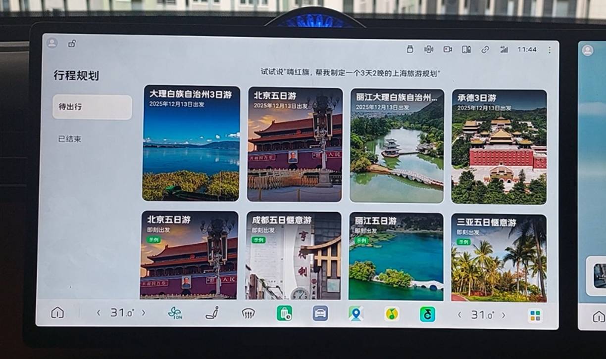 在行程規劃方面,紅旗HS6 PHEV的語音助手能夠實現從生成到落地的完整閉環。用戶可通過語音直接創建行程,系統會自動整合目的地、路線與時間等信息,并支持保存至車機。若需調整,行程中的每個環節都支持手動修改與查看,實現了“一說即建、可調可存”的靈活體驗。這一功能的價值,在于它將以往需要在手機或地圖上多次操作的規劃過程,簡化為一兩句對話,讓說走就走的旅程變得簡單又方便。