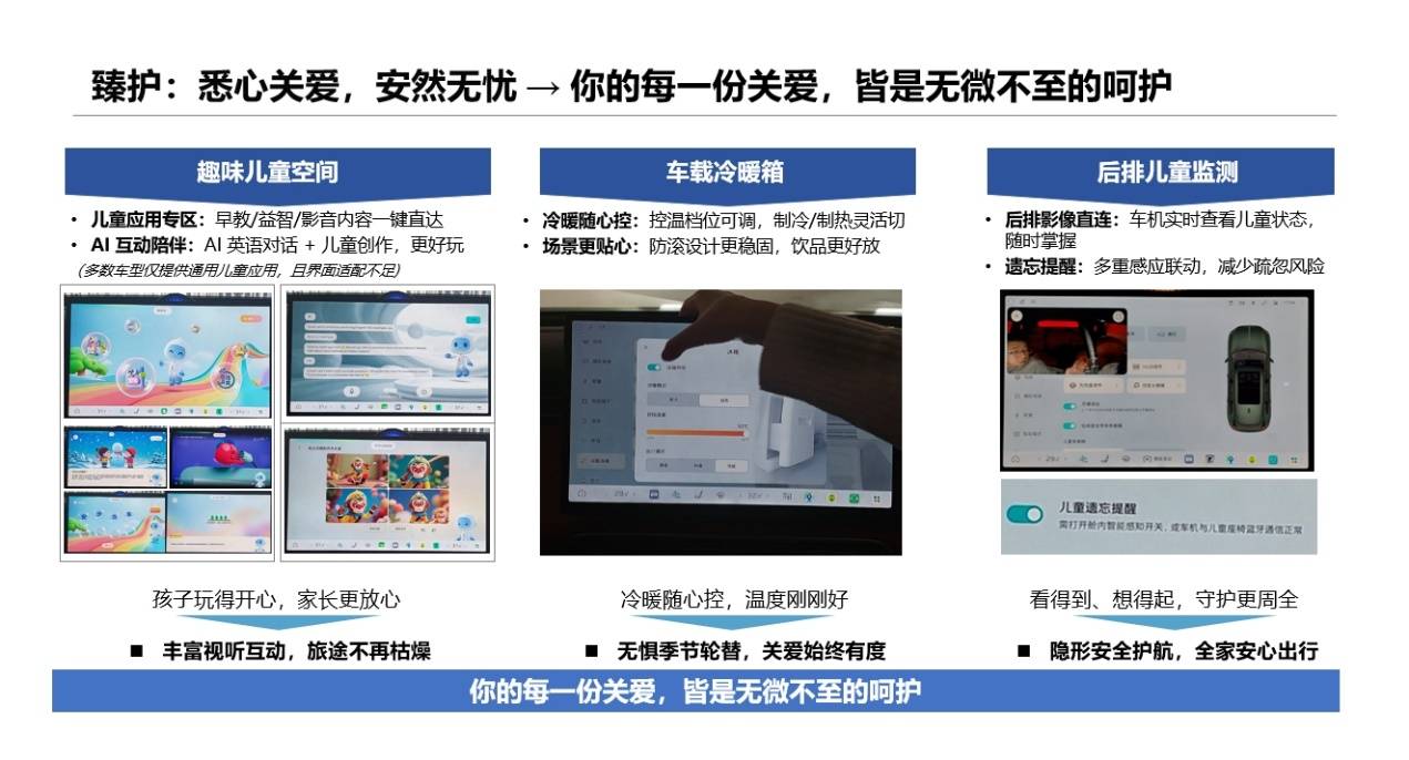 紅旗HS6 PHEV配備的后排兒童照看功能,為家庭出行增添了一份實在的安全感。通過車機屏幕,駕駛者無需回頭便能隨時查看后排孩子的實時狀態,大大減少了因分心帶來的顧慮。此外,系統還搭載了多重感應聯動的“遺忘提醒”,能在鎖車前后及時預警,有效降低將孩子獨自遺留在車內的風險。
