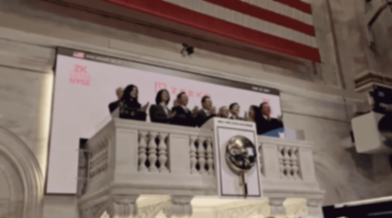 ▲極氪CEO安聰慧在紐交所現場“敲鐘”