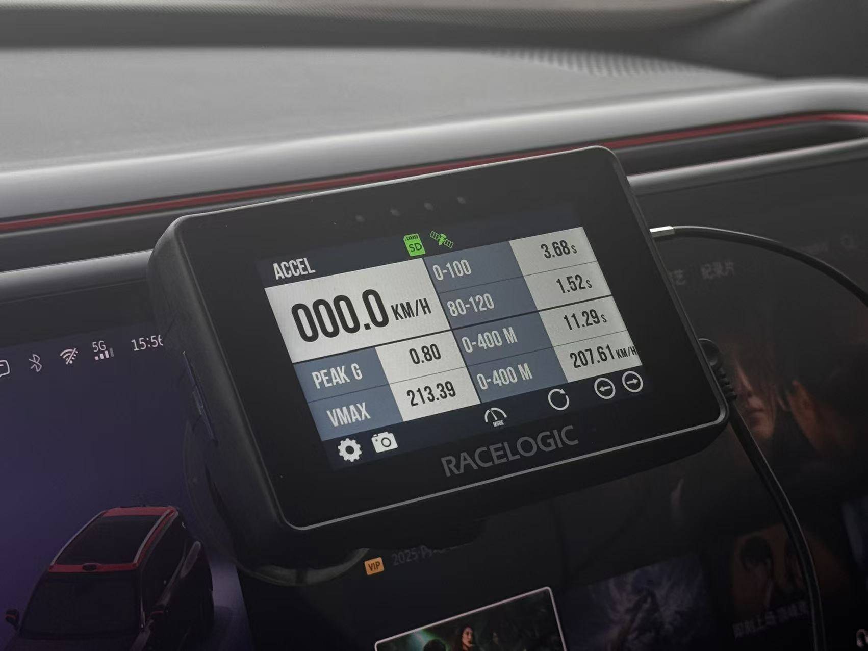 電量補(bǔ)到99%后我重新試了一次,這時(shí)精靈#5 BRABUS跑出3.68秒的反向虛標(biāo)01-00km/h成績(jī),11.29秒就以207.61km/h車速?zèng)_過(guò)400米,比之前測(cè)試的雙電機(jī)極氪001還快一截,極速213km/h也比官方數(shù)據(jù)快一點(diǎn)點(diǎn),這樣的性能表現(xiàn)對(duì)于30萬(wàn)級(jí)的價(jià)格來(lái)說(shuō),絕對(duì)超綱了。不過(guò)smart設(shè)定的起步狀態(tài)十分平穩(wěn),0.8G帶來(lái)的推背感不算刺激,而是用盡了全部抓地力來(lái)確保成績(jī)。