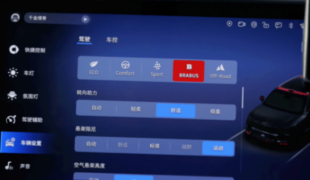 在轉(zhuǎn)向時(shí),精靈#5 BRABUS的很多優(yōu)點(diǎn)會(huì)被放大。雖然這依然是有體量感的SUV,彎道中并不輕盈,加碼的橫向側(cè)傾會(huì)讓你心懷敬意,但smart的可變阻尼配合良好的懸架設(shè)計(jì),還是令精靈#5 BRABUS給出讓人意外的駕控能力。