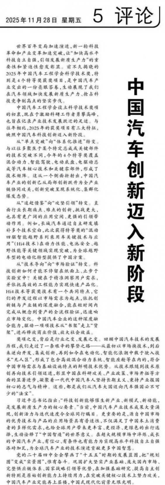2025年,長城汽車多次登上《人民日報》,從7月頭版報道自主研發成果,到8月國際版點贊高質量出海,再到11月評論版院士署名力挺Hi4技術,其頻率之高、規格之重,在中國汽車企業中實屬罕見。