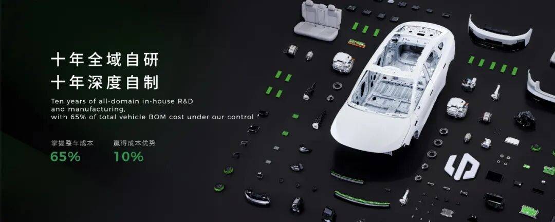正因?yàn)榱闩芷嚫哌_(dá)65%的自研自制零部件比例,這樣在沖刺100萬輛的階段更容易通過平臺(tái)化與供應(yīng)鏈議價(jià)把“規(guī)模優(yōu)勢”轉(zhuǎn)化為“毛利/價(jià)格競爭力”,并支撐長期400萬的成本曲線。