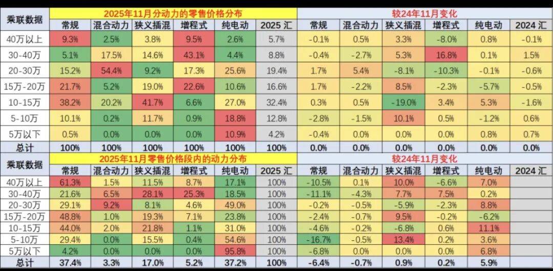 例如,11月純電車的零售銷量同比增長9.2%,而增程和插混分別下降4.3%和2.8%。新勢力中,純電和增程的結(jié)構(gòu)占比,從去年11月的57%:43%,變?yōu)榻衲甑?3%:27%。