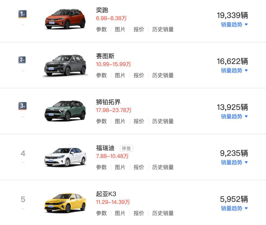 數(shù)據(jù)顯示,2025年1-11月起亞奕跑銷量為19339輛,在起亞品牌中銷量第一,起亞K3為5952輛,在起亞品牌中銷量第五。