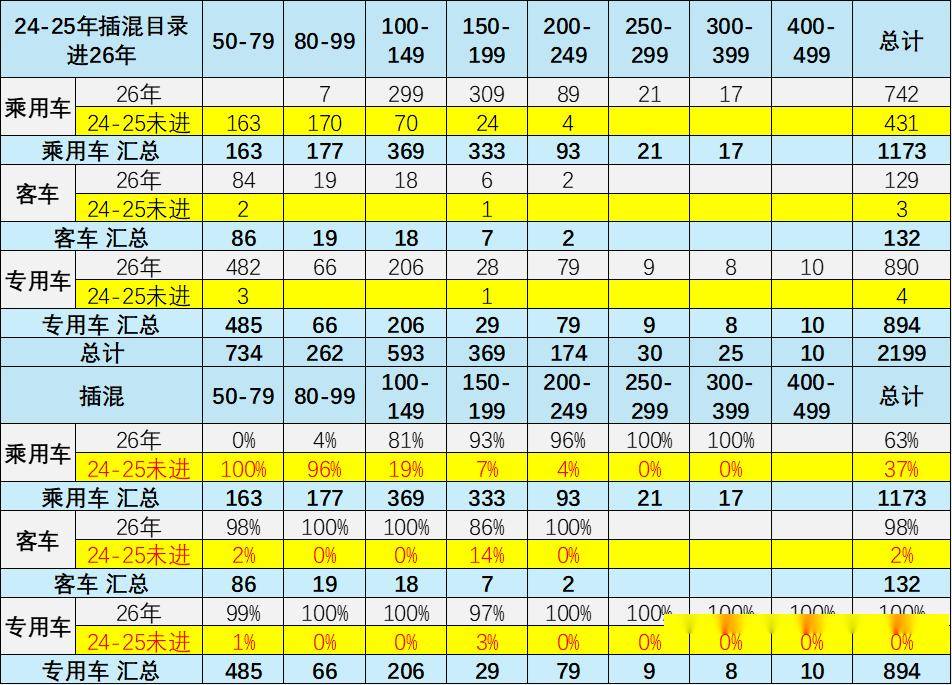 24-25年插混汽車免車購稅車型目錄進入26年的表現(xiàn)差異化,乘用車沒進入的較多,有利于乘用車更多的推出新車型,實現(xiàn)更高質量的發(fā)展。