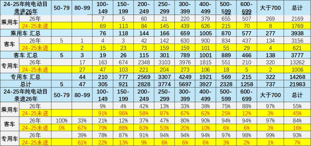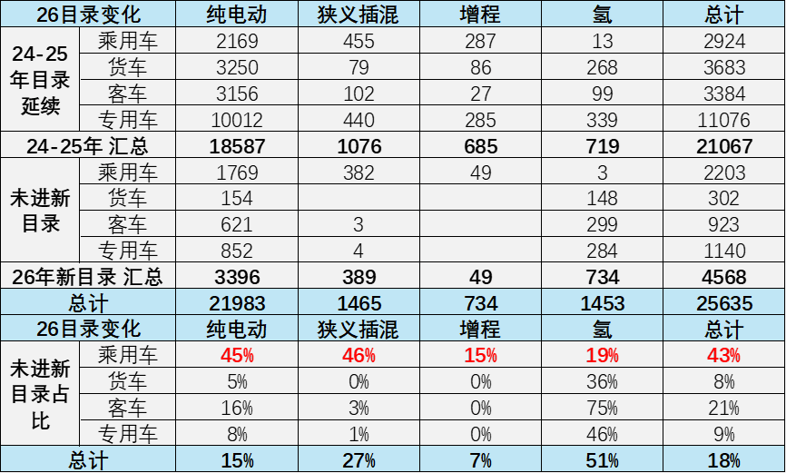 24-25年純電動汽車免車購稅車型目錄進入26年的表現(xiàn)差異化,乘用車沒進入的較多,有利于乘用車更多的推出新車型,實現(xiàn)更高質量的發(fā)展。