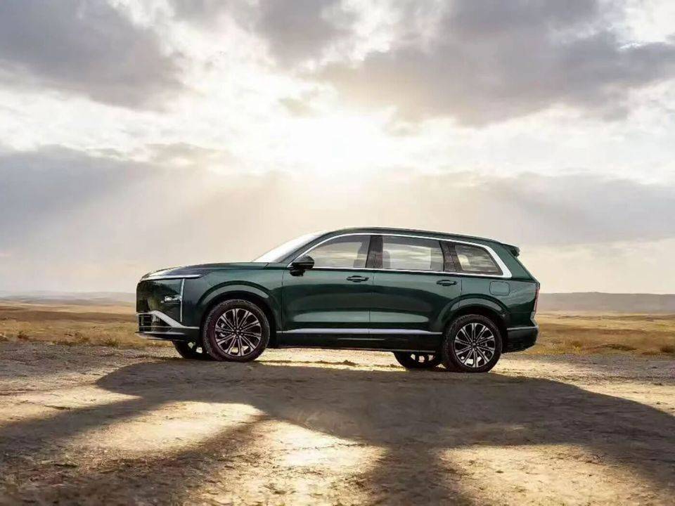 來到車身側面,常規的傳統SUV車型四合計,采用常規造型的車門把手,新車提供5座和6座兩種座椅布局可選。結合申報信息來看,車身尺寸方面,新車的長寬高分別為4980/1930/1760mm,軸距為2950mm,提供5座和6座布局。同時,申報車型提供19英寸和20英寸多輻式造型輪圈可選。