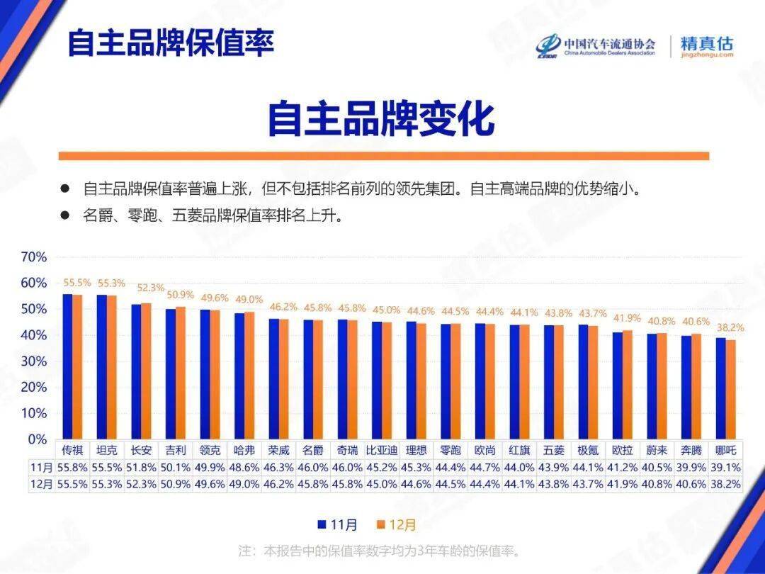 2026年1月5日,中國汽車流通協會和精真估聯合發布了《2025年12月中國汽車保值率研究報告》。通過保值率研究旨在反映品牌的產品力、認知度、美譽度等綜合實力,對未來開展回購、置換、租賃、金融、新車定價參考等相關業務提供重要數據參考,從而降低業務風險,提升經營效率。