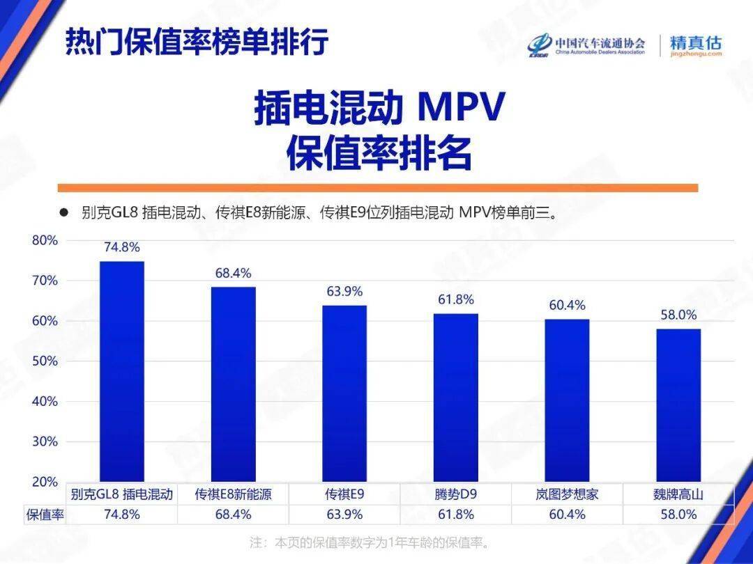 在插電混動MPV這一匯聚了傳統巨頭與新能源先鋒的關鍵賽道,MPV的競爭也已經進入到“場景定義”與“技術賦能”深度融合的最高階段。別克GL8插電混動車型無縫繼承了燃油版在高端商務接待與豪華家庭出行市場中無可替代的場景統治力、品牌認知和用戶信任。同時,插混系統徹底解決了燃油版高油耗的痛點,最終保值率位列第一名。傳祺E8新能源、傳祺E9分別保值率第二、第三名。