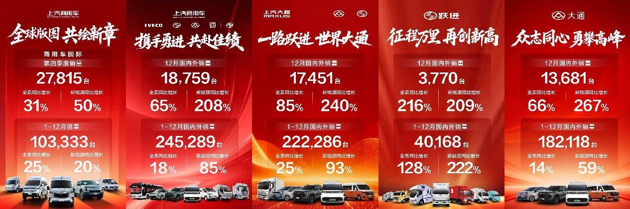 在一片繁榮之下,作為自主商用車的代表,上汽大通也交出了一份亮眼的成績(jī),全年銷售超22.2萬(wàn)輛,同比增長(zhǎng)25%,并連續(xù)十一個(gè)月實(shí)現(xiàn)月銷同比正增長(zhǎng),新能源國(guó)內(nèi)滲透率單月突破50%,遠(yuǎn)超行業(yè)平均水平。