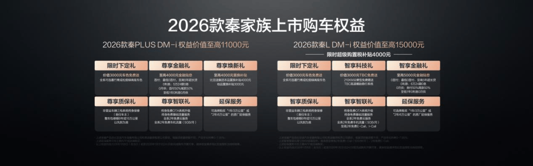 比亞迪為兩款車型設置了極具吸引力的上市權益。秦L DM-i提供至高15000元的多重權益,包括限時購置稅補貼和TBC高速爆胎穩行系統贈送;秦PLUS DM-i則提供至高11000元權益,降低年輕家庭購車門檻。