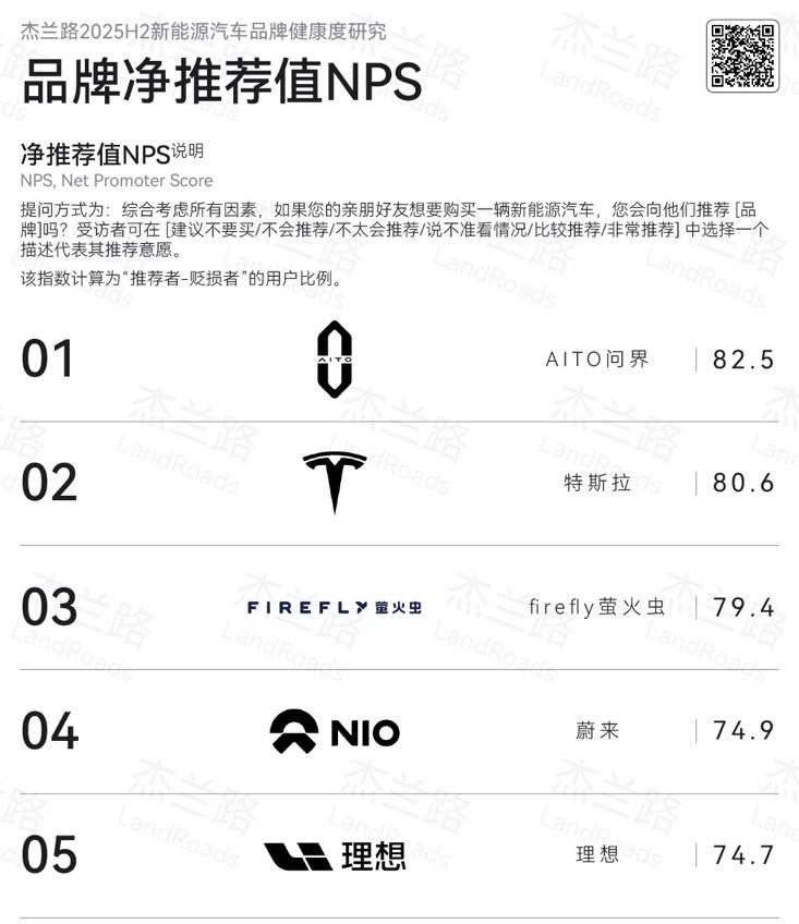 最近,第三方專業機構杰蘭路發布了《2025年度下半年新能源汽車品牌健康度研究(NPS篇)》,解讀了NPS的變化趨勢。