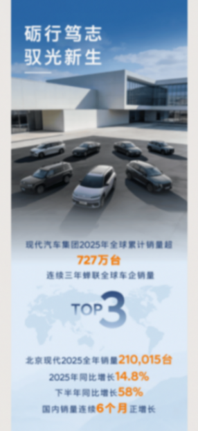 從逆勢增長的2025到藍圖清晰的2026,北京現代以戰略定力穿越行業周期,以體系韌性夯實發展根基,以品質堅守贏得用戶認可。隨著“智啟2030計劃”的持續深化,在產品、技術、市場、服務的多維賦能下,這家合資轉型標桿企業正開啟全新發展階段,未來有望在新能源與智能化的賽道上實現更大突破,為中國車市的高質量發展注入更多活力。