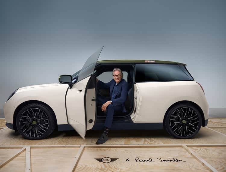 與英倫設計大師Paul Smith的合作始于1998年,從經典藍色限定款到可持續概念車,每一次聯名都詮釋著英倫設計的創新表達。Paul Smith以設計高定時裝的思路,深度參與了從車漆定義、內飾材質到每一處細節設計的全過程。他親自調配了三款車漆:靈感源于經典的“羊皮紙白”與“拂曉灰”,以及致敬其家鄉的“諾丁漢綠”。這種綠色被巧妙運用在車頂、輪轂蓋等處,成為設計師的獨特印記。
