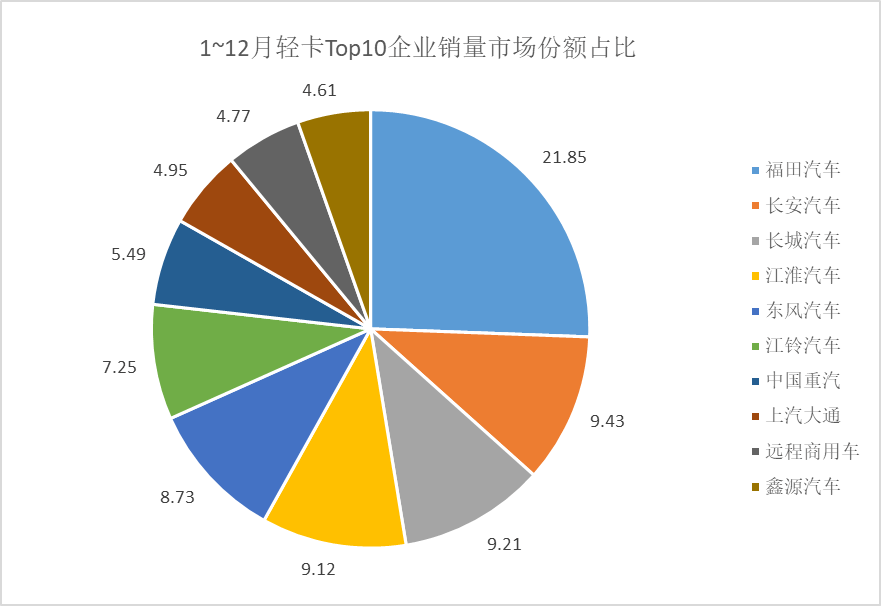 分企業(yè)來看,福田汽車以44.5萬輛的成績居于榜首;Top10企業(yè)銷量均超過9萬輛,銷量超過10萬輛的企業(yè)有7家。