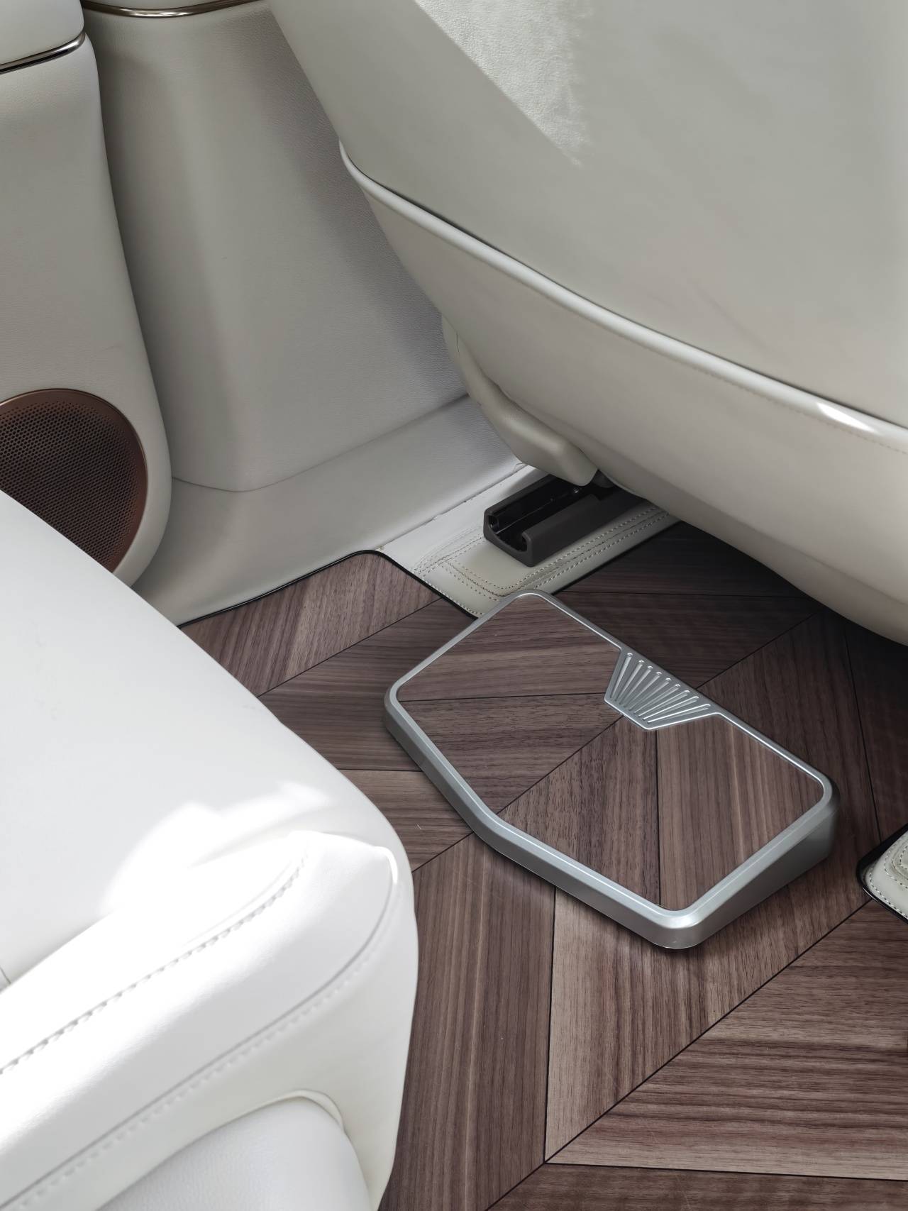 經銷商給這臺試駕車鋪的木地板也非常神奇,這個所謂的“腳托”很影響后排腿部坐姿,感覺我的腿腳被這玩意兒固定住了,印象里這個地板還要花9800元,對我來說也是一個絕對不會選的配件。說到地板,智己還提供一個帶地暖功能的原廠地板選配,真是個無比神奇的功能,我非常想見識見識。