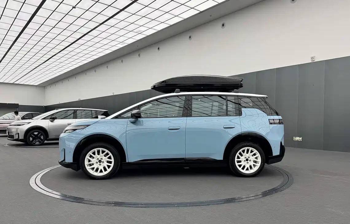 車尾的設計比較簡潔,尾燈樣式與前燈呼應,后包圍兩側同樣設有通風口,并配有銀色護板。此外,發布會現場還展示了一款加裝戶外套件的版本,采用藍白雙色車身、車頂行李架及白色多輻輪圈,增添了些許復古風格。
