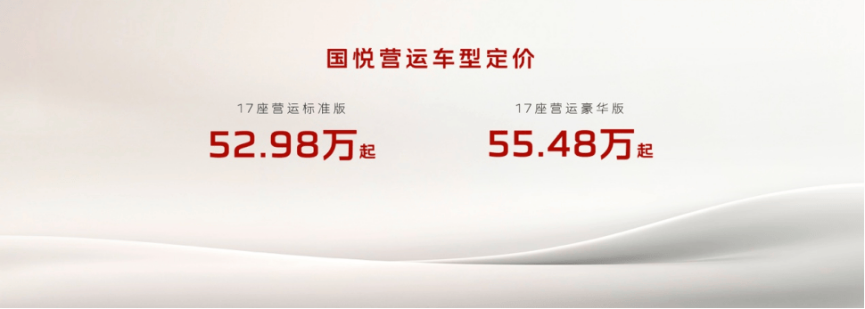 新車提供17座營運(yùn)標(biāo)準(zhǔn)版和17座營運(yùn)豪華版兩款車型,官方指導(dǎo)價分別為52.98萬起和55.48萬起,以差異化配置和豐富的個性化選裝,精準(zhǔn)滿足不同運(yùn)營商對高效可靠、持久盈利的核心訴求,同時為乘客創(chuàng)造“安全、尊享、舒適”的出行體驗(yàn)。這是立足紅旗金葵花國悅車型的成功基礎(chǔ)與對營運(yùn)市場的深度洞察,傾力打造的紅旗金葵花國悅營運(yùn)版是紅旗對高端商務(wù)接待、旅游租賃、政企通勤等場景專業(yè)化、品質(zhì)化升級需求的精準(zhǔn)回應(yīng)。